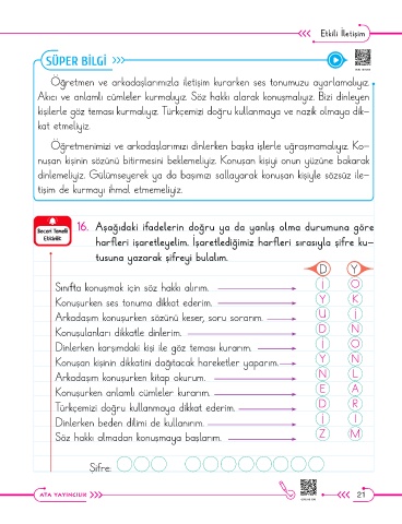 16. Aşağıdaki ifadelerin doğru ya da yanlış olma durumuna göre