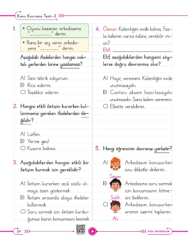 C) Kusura bakma. 5. Hangi öğrencinin davranışı yanlıştır?