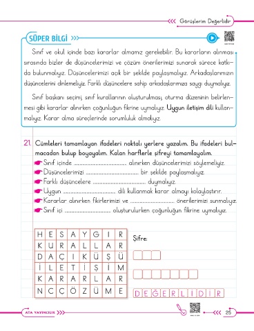 ☛ Sınıf içinde ........................................................ alınırken düşüncelerimizi söylemeliyiz.