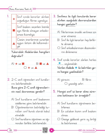 ralları sınıf kuralı olarak kabul B) En çalışkan kişinin sınıf başkanı