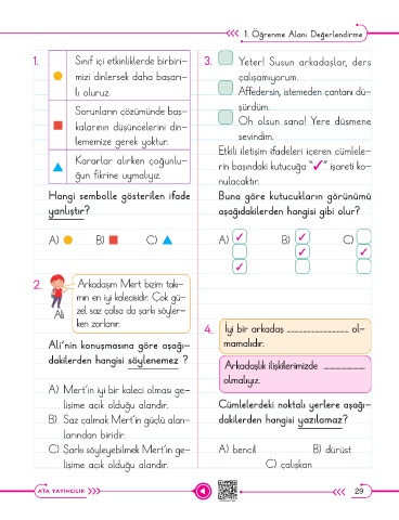 1. Sınıf içi etkinliklerde birbiri- 3. Yeter! Susun arkadaşlar, ders