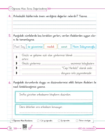 4. Arkadaşlık ilişkilerinde önem verdiğiniz değerler nelerdir? Yazınız.