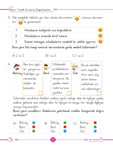 3. Eda aşağıdaki tabloda yer alan olumlu davranışları “ ”, olumsuz davranış-