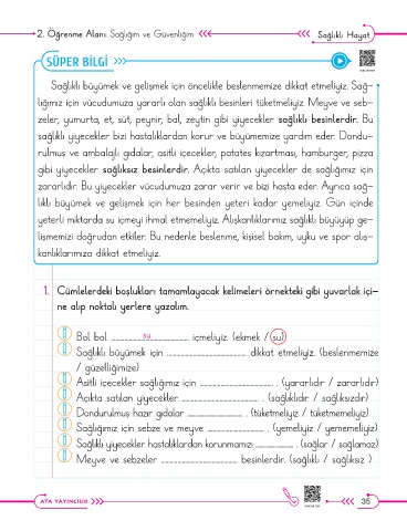 2. Öğrenme Alanı: Sağlığım ve Güvenliğim Sağlıklı Hayat