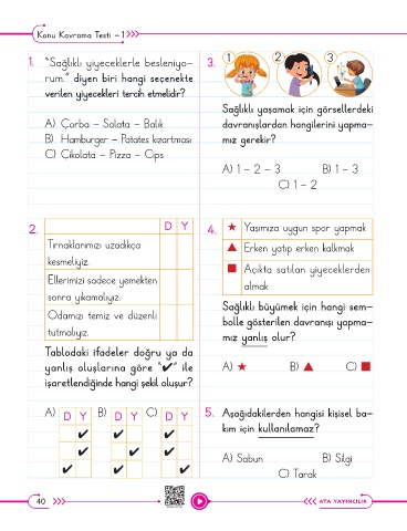 1. “Sağlıklı yiyeceklerle besleniyo- 3. 1 1 2 2 3 3