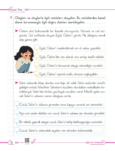 9. Olayları ve olaylarla ilgili cümleleri okuyalım. Bu cümlelerden kişisel