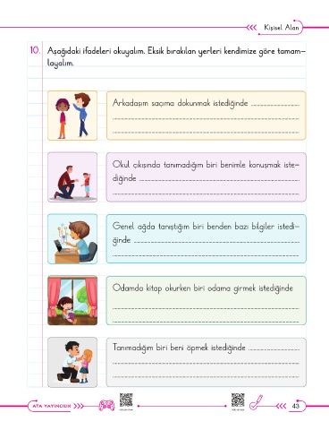 10. Aşağıdaki ifadeleri okuyalım. Eksik bırakılan yerleri kendimize göre tamam-