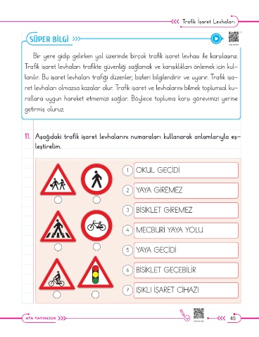 11. Aşağıdaki trafik işaret levhalarını numaraları kullanarak anlamlarıyla eş-