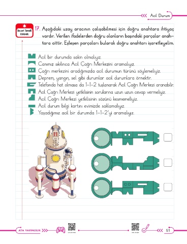 17. Aşağıdaki uzay aracının çalışabilmesi için doğru anahtara ihtiyaç