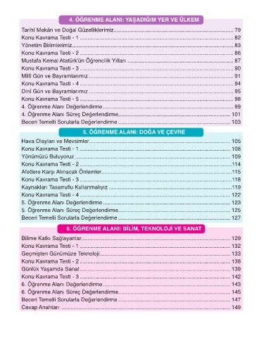 4. Öğrenme Alanı Süreç Değerlendirme......................................................................... 101