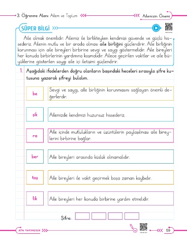 3. Öğrenme Alanı: Ailem ve Toplum Ailemizin Önemi