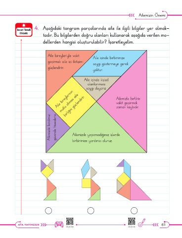 4. Aşağıdaki tangram parçalarında aile ile ilgili bilgiler yer almak-