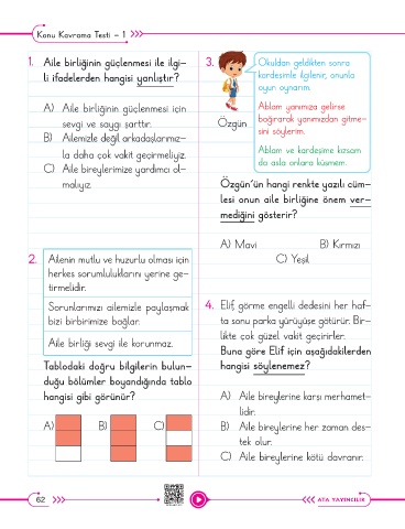 1. Aile birliğinin güçlenmesi ile ilgi- 3. Okuldan geldikten sonra