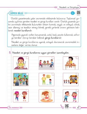 5. Nezaket ve görgü kurallarına uygun görselleri işaretleyelim.