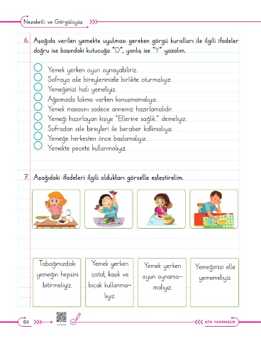 6. Aşağıda verilen yemekte uyulması gereken görgü kuralları ile ilgili ifadeler