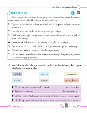 Yakın çevremizde üzerimize düşen görev ve sorumluluklar vardır. Üzerimize
