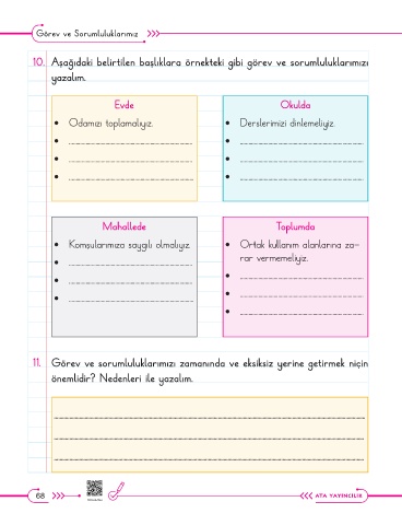 10. Aşağıdaki belirtilen başlıklara örnekteki gibi görev ve sorumluluklarımızı