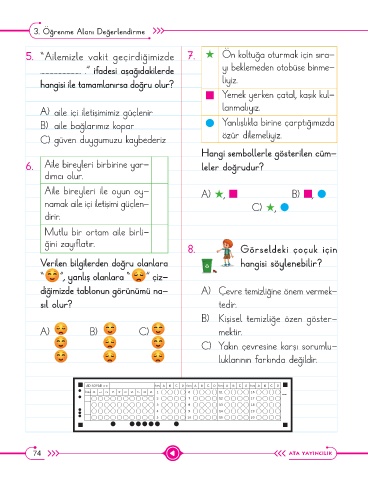 diğimizde tablonun görünümü na- A) Çevre temizliğine önem vermek-