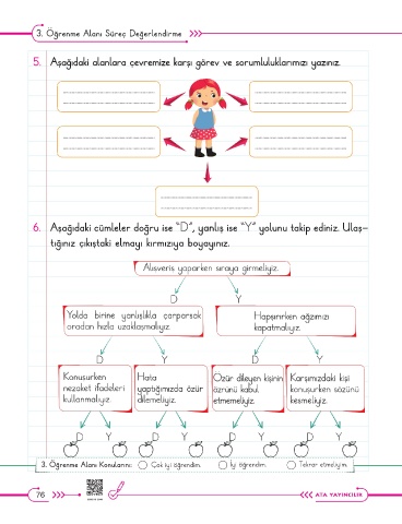 6. Aşağıdaki cümleler doğru ise “D”, yanlış ise “Y” yolunu takip ediniz. Ulaş-