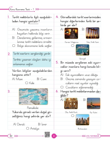 1. Tarihî mekânlarla ilgili aşağıdaki- 4. Görsellerdeki tarihî eserlerimizden