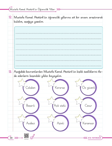 12. Mustafa Kemal Atatürk‘ün öğrencilik yıllarına ait bir anısını araştırarak