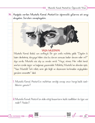 14. Aşağıda verilen Mustafa Kemal Atatürk‘ün öğrencilik yıllarına ait anıyı