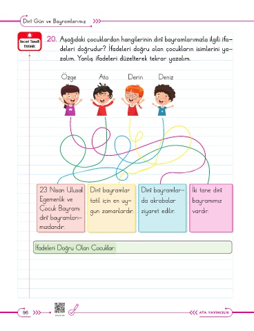 20. Aşağıdaki çocuklardan hangilerinin dinî bayramlarımızla ilgili ifa-