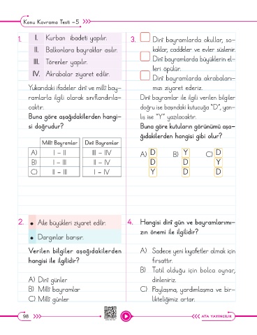 2. • • Aile büyükleri ziyaret edilir. 4. Hangisi dinî gün ve bayramlarımı-