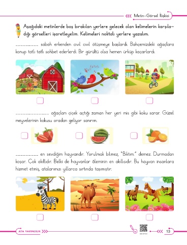 dığı görselleri işaretleyelim. Kelimeleri noktalı yerlere yazalım.