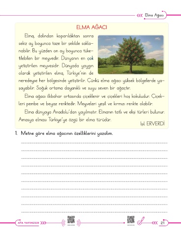 1. Metne göre elma ağacının özelliklerini yazalım.