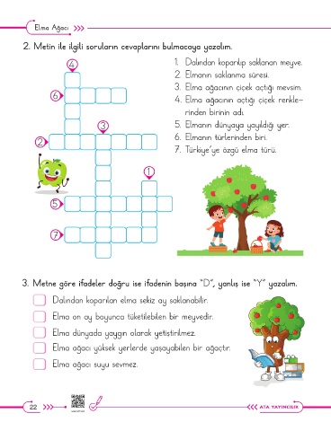 3. Metne göre ifadeler doğru ise ifadenin başına “D”, yanlış ise “Y” yazalım.