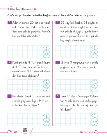 1 Aden’in annesi 20 tane portakal 4 56 sayfalık kitabın 38 sayfasını