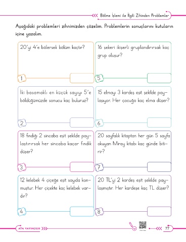 12 kelebek 4 çiçeğe eşit sayıda kon- 20 TL'yi 2 kardeş eşit şekilde pay-