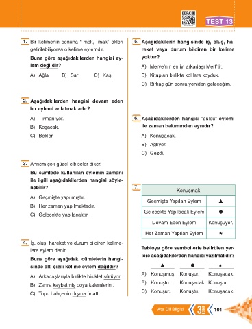 1. Bir kelimenin sonuna “-mek, -mak” ekleri 5. Aşağıdakilerin hangisinde iş, oluş, ha-