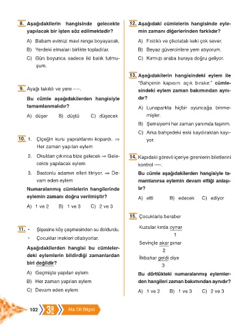 8. Aşağıdakilerin hangisinde gelecekte 12. Aşağıdaki cümlelerin hangisinde eyle-