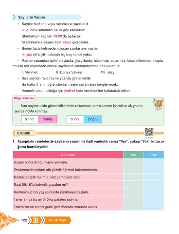 1. Aşağıdaki cümlelerde sayıların yazımı ile ilgili yanlışlık varsa “Var”, yoksa “Yok” kutucu-
