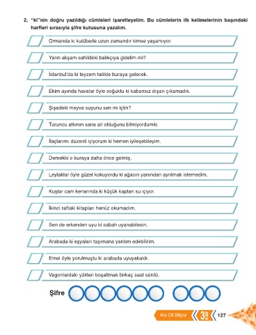 2. “ki”nin doğru yazıldığı cümleleri işaretleyelim. Bu cümlelerin ilk kelimelerinin başındaki