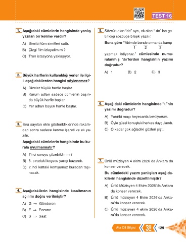 1. Aşağıdaki cümlelerin hangisinde yanlış 5. Sözcük olan “de” ayrı, ek olan “-de” ise ge-
