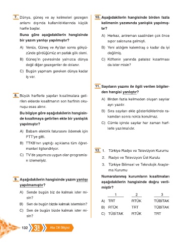 7. Dünya, güneş ve ay kelimeleri gezegen 10. Aşağıdakilerin hangisinde birden fazla