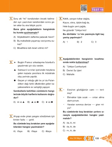Bu cümlede boş bırakılan yere aşağıda- A) da, ki, mi