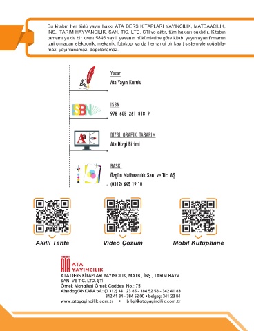 Bu ki ta bın her tür lü ya yın hak kı ATA DERS KİTAPLARI YA YIN CI LIK, MAT BA ACI LIK,