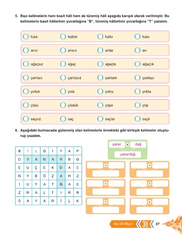 6. Aşağıdaki bulmacada gizlenmiş olan kelimelerle örnekteki gibi birleşik kelimeler oluştu-