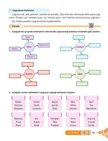2. Aşağıda verilen kelimelerin çağrışım yaptığı kelimeleri bulalım.