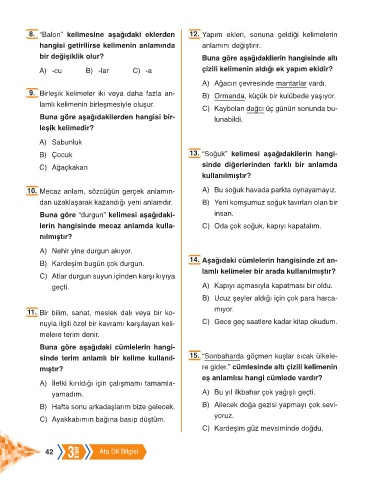 B) Çocuk 13. “Soğuk” kelimesi aşağıdakilerin hangi-