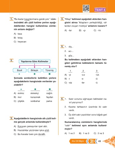 1. “Bu kadar kaygılanmana gerek yok.” cüm- 4. “Kitap” kelimesi aşağıdaki eklerden han-