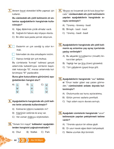 A) G B) G C) M dim.” cümlesindeki anlamı dışında kul-