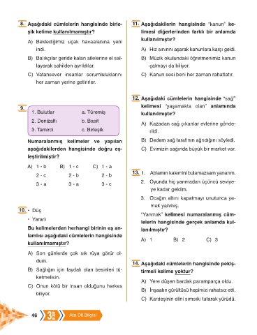 8. Aşağıdaki cümlelerin hangisinde birle- 11. Aşağıdakilerin hangisinde “kanun” ke-