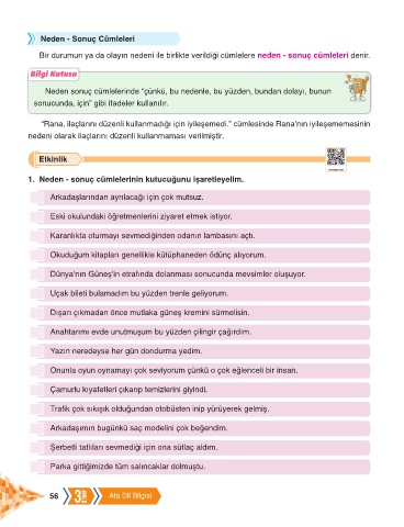 1. Neden - sonuç cümlelerinin kutucuğunu işaretleyelim.