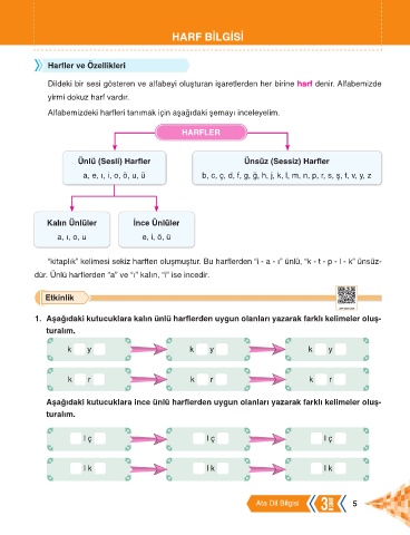 1. Aşağıdaki kutucuklara kalın ünlü harflerden uygun olanları yazarak farklı kelimeler oluş-