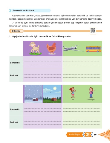 Çevremizdeki varlıkları, okuduğumuz metinlerdeki kişi ve nesneleri benzerlik ve farklılıkları yö-